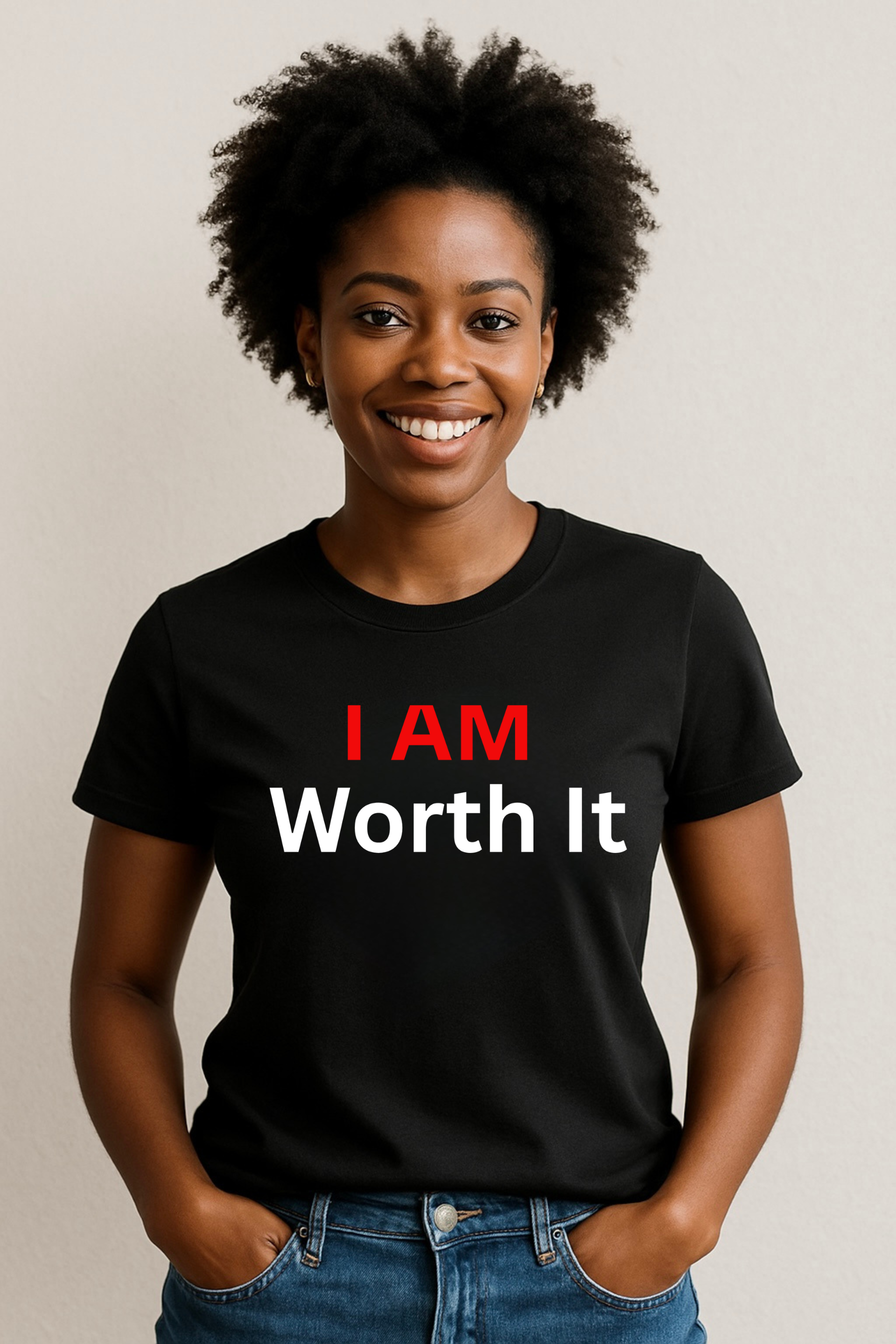 Elevate your confidence with our 'I am worth it' t-shirt.